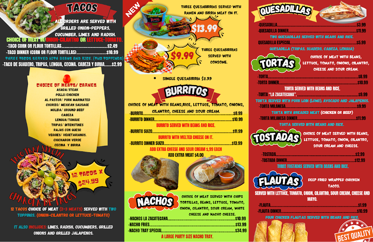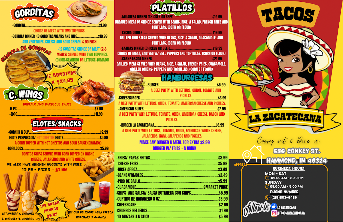 Welcome to Tacos “La Zacatecana LLC,” a hidden gem located at 536 Conkey St, Hammond, IN. This cozy Mexican eatery specializes in authentic flavors, making it a must-visit for taco enthusiasts and food lovers alike. The menu features mouthwatering options like steak tacos and tortas, each reflecting a true passion for culinary excellence. Customer reviews rave about the delicious pastor tacos and the satisfying milanesa torta, both highlighted for their rich taste and freshness.